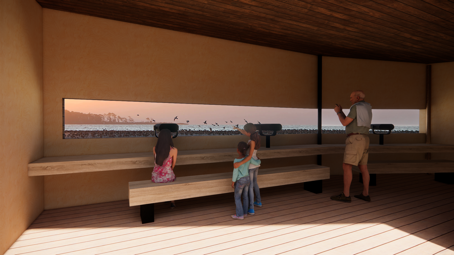 This is design for a small bird hide with telescopes and infomation boards so people can watch and learn about the birds.